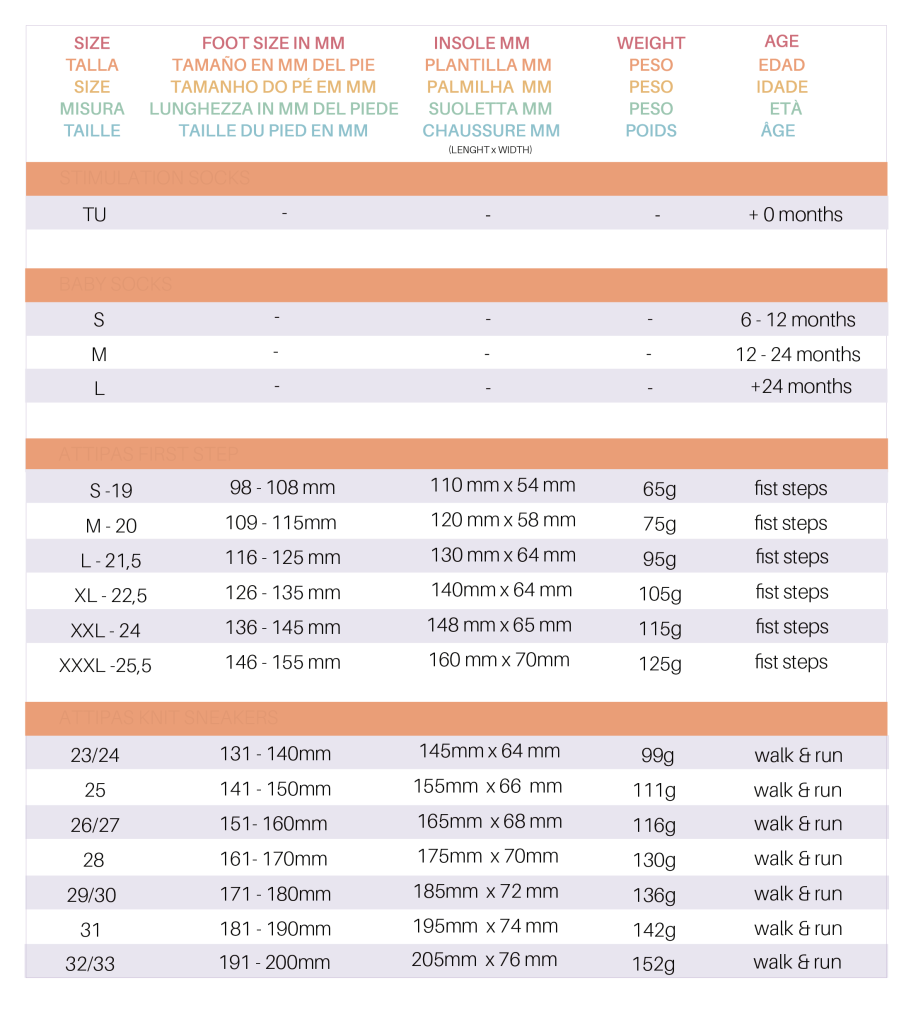 SKIN SHOES, o novo modelo Attipas para bebês que já andam sozinhos. Ideal para correr, pular, escalar e explorar durante a infância. Com o mesmo conceito do Attipas mas evoluindo para as novas necessidades do bebé que agora anda sozinho. Mantém a essência Attipas, flexível, antiderrapante, biqueira larga, sola plana e adequada para lavagem na máquina. E acrescenta ainda novos conceitos adequados à nova fase de crescimento do bebé para promover a sua autonomia, com novo sistema de regulação com velcro e palmilha removível.