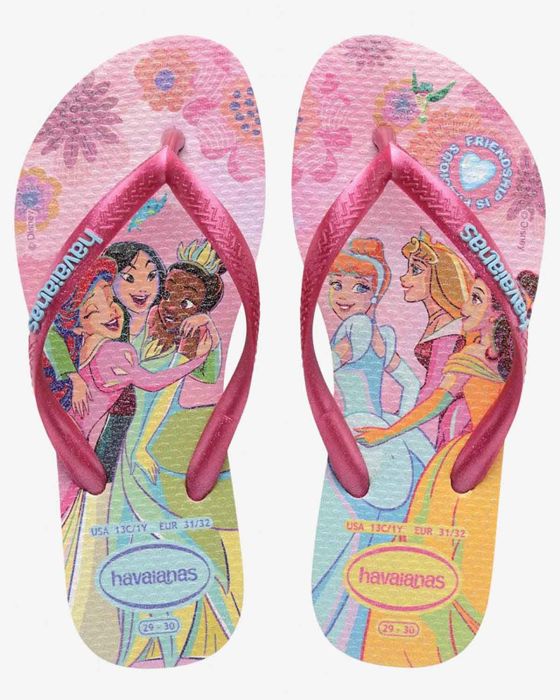 Para as pequenas que sonham com contos de fadas e aventuras mágicas, as Havaianas Kids Slim Princess chegaram para deixar cada passo encantador! Essa icônica adição à coleção Havaianas Kids captura todo o encanto das princesas Disney mais queridas.
