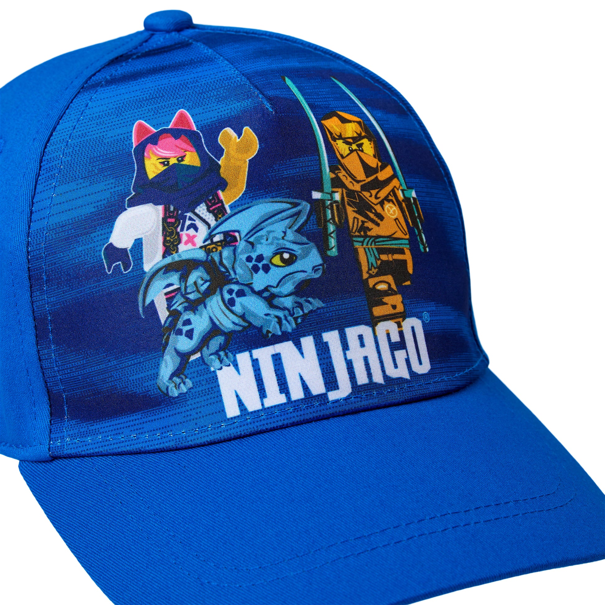 Chapéu LEGO Ninjago com estampa na frente e ajuste atrás com velcro.