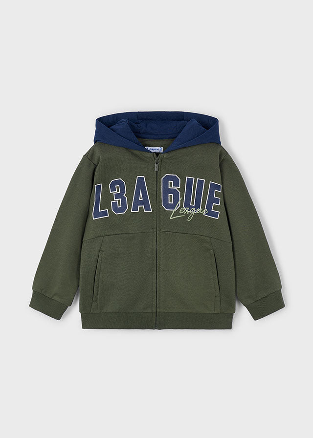 Fato de treino de três peças para menino composto por um casaco e duas calças desportivas. Tecido de felpa cardada, especialmente indicado para proteger do frio.