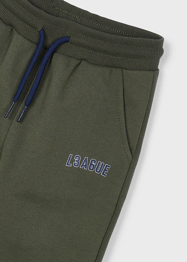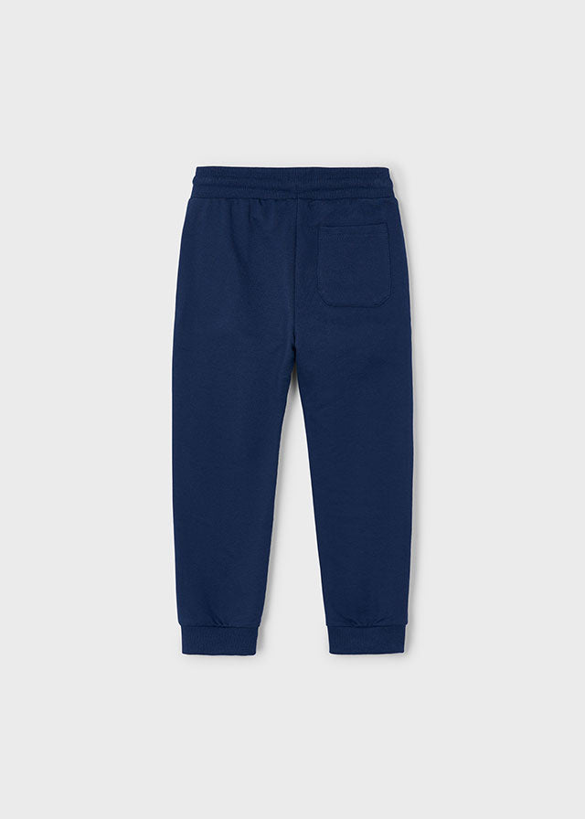 Calças desportivas para menino de grande conforto. Cintura elástica com cordão. Joelhos reforçados no interior, especialmente concebidos para proporcionar maior resistência na área de maior desgaste. Bolsos laterais.