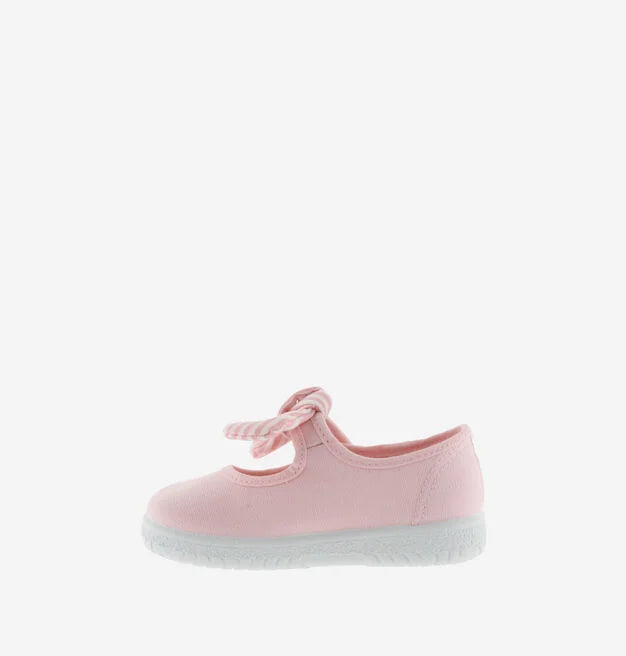 Sabrinas vitória clássica para os mais pequenos fabricadas na Espanha em lona de algodão orgânico, com laço listrado removível.