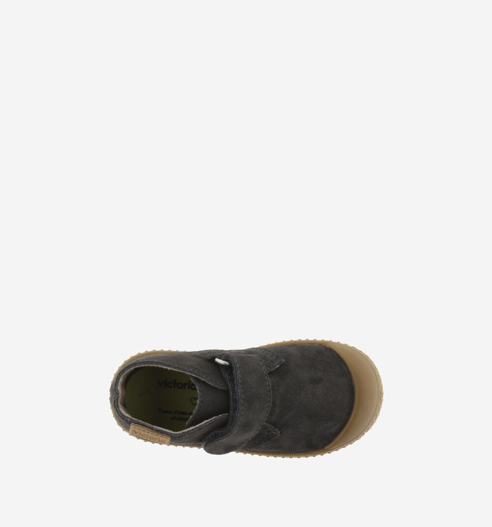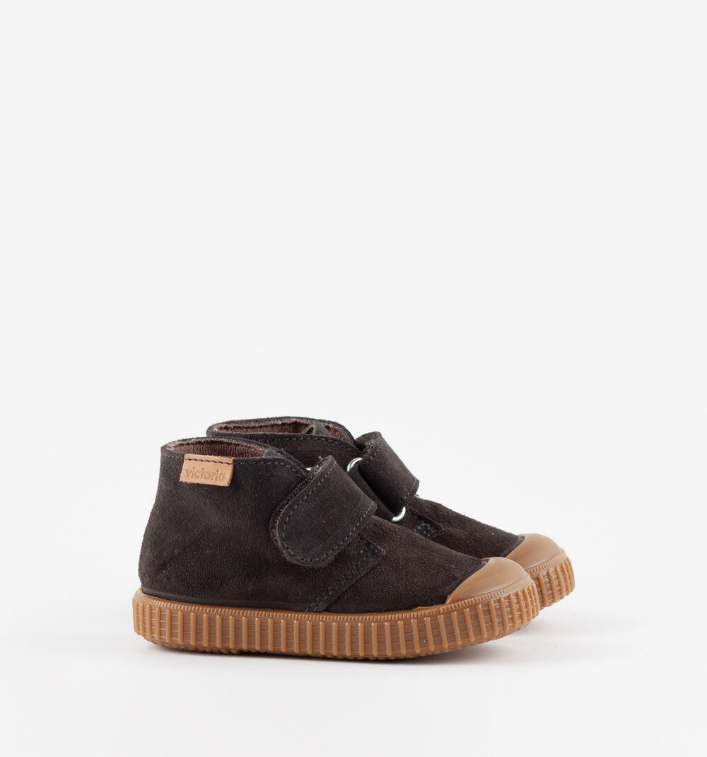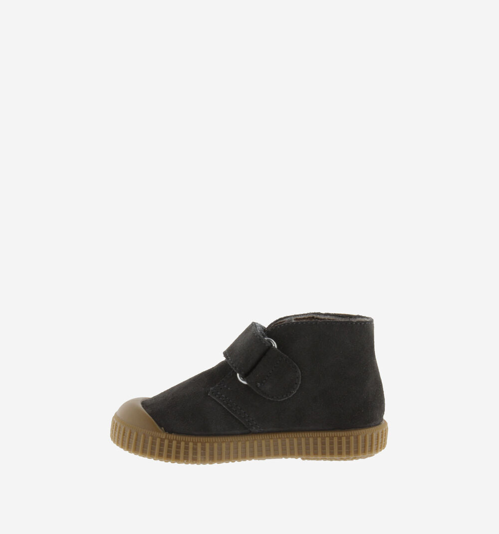 Botins infantis em pele. Apertam com uma tira para um ajuste perfeito ao pé, facilitando a colocação e a retirada. Biqueira de borracha reforçada para torná-los mais resistentes. Eles vêm com palmilha de alta densidade para maior conforto. Sola mole e flexível para um melhor conforto.