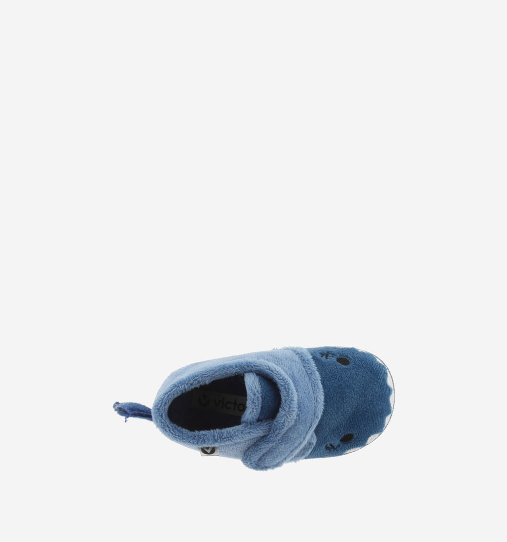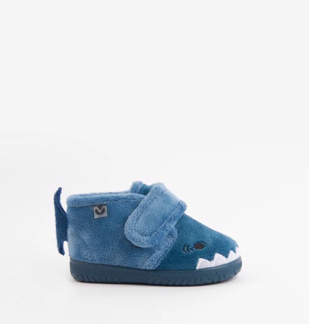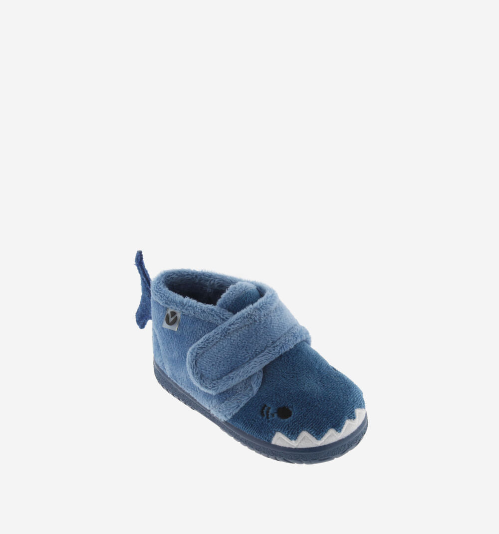 Pantufas Victoria com motivos de animais para crianças. Fabricados em Espanha em pelo curto muito suave e agradável. Fecho com velcro para facilitar o calçar e a autonomia.